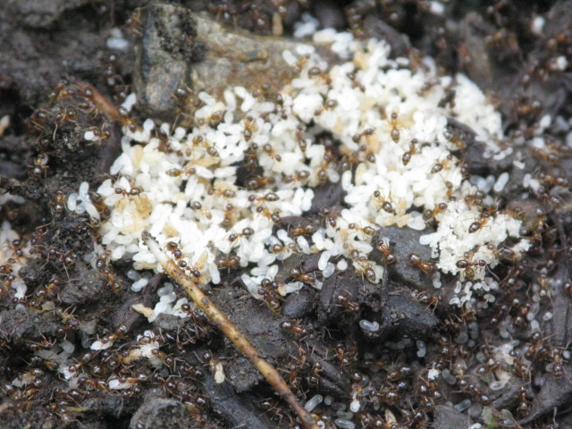 今日、ミカドオオアリサテライト3コロニーを覗いたところ、どれも卵がありました。