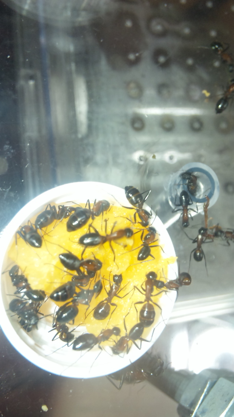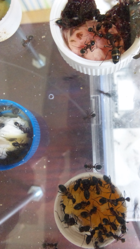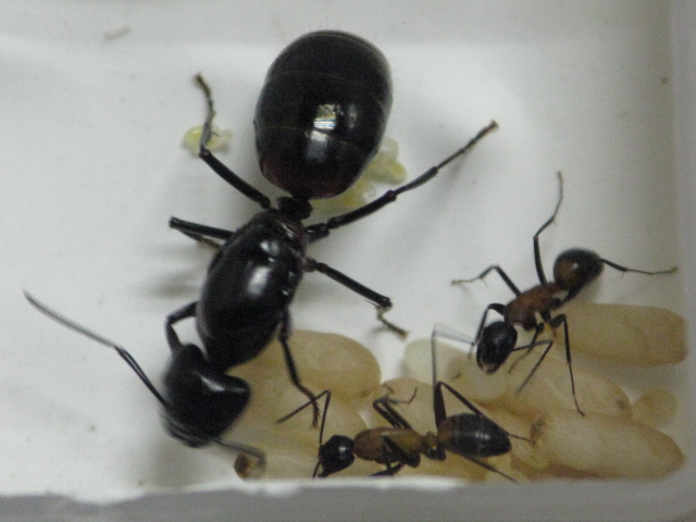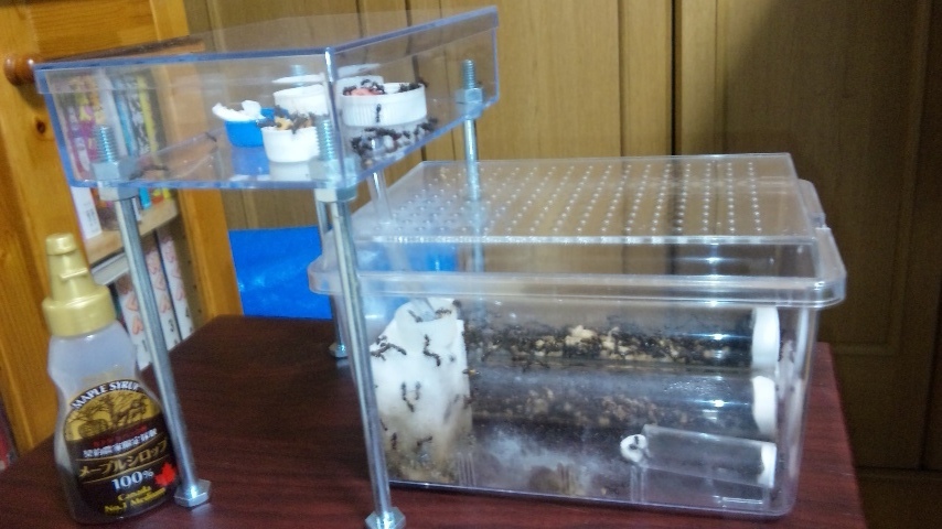 採取した際(確か5月か6月)すべて女王がいなかったのですが、なぜなんだ? 採取した際、新女王、オスアリは、いませんでしたが蛹だったものが新女、オスアリになってる。 僕なりに考えられることは、 ●交尾をしていない新女王が卵を産んでいる ●実は、女王は、いた。 ●オスアリと巣の中で交尾をして卵を産んだ さあどれだろう。 この話とは、違うがムネアカオオアリ(女王1、その他アリ600)コロニーだが、たまに働きアリが他の働きアリたちにやられているシーンを光景する。なぜだろうか・・・。 餌場を空けたときに、逃げるアリは一日一匹は、いて すぐ入れるが それが影響しているのであろうか? また、ふたを閉める際、お腹をつぶしていまったアリがいたが、 攻撃を受けていた。。 ほわっと!! PR
