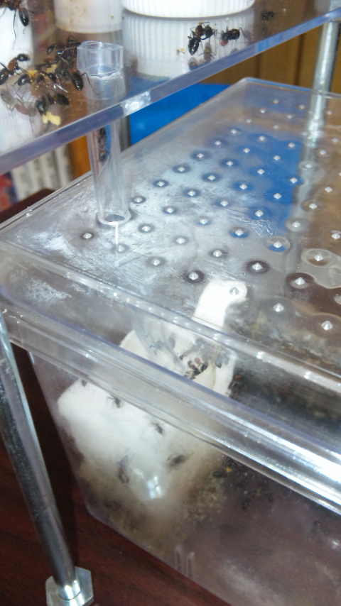 今後から、えさは一日一回交換しよう。。 また、コナダニを絶滅させた、スプレーの威力は絶大だったことを 報告する。もちろんアリたちは大丈夫である。 クリーンスプレー ダニストッパー